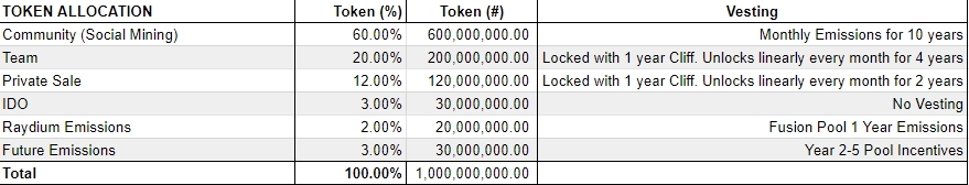 $GRAPE Token distribution is planned over 5 years for the first 700 million. After the 60th epoch (month), the DAO will decide how to allocate the remaining 300 million of Community rewards